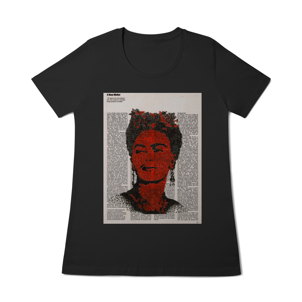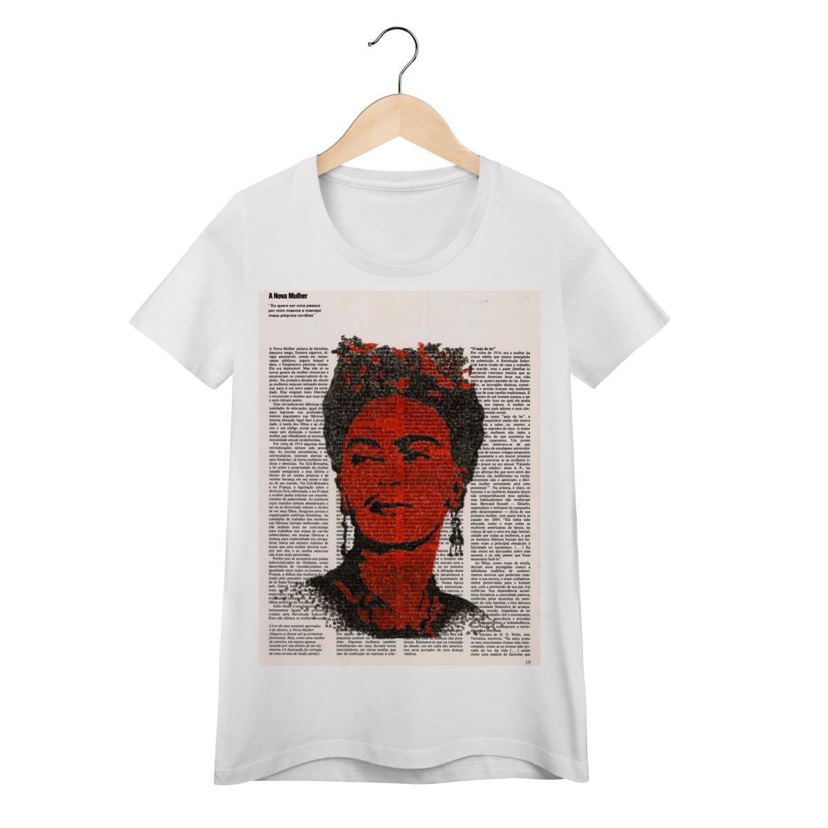 Nesta estampa “Frida Kahlo”, a força da arte autoral em datilografia encontra a potência emocional da artista. Vestir arte é tão potente quanto criar revoluções internas — peça para quem vive estilo, expressão e personalidade.