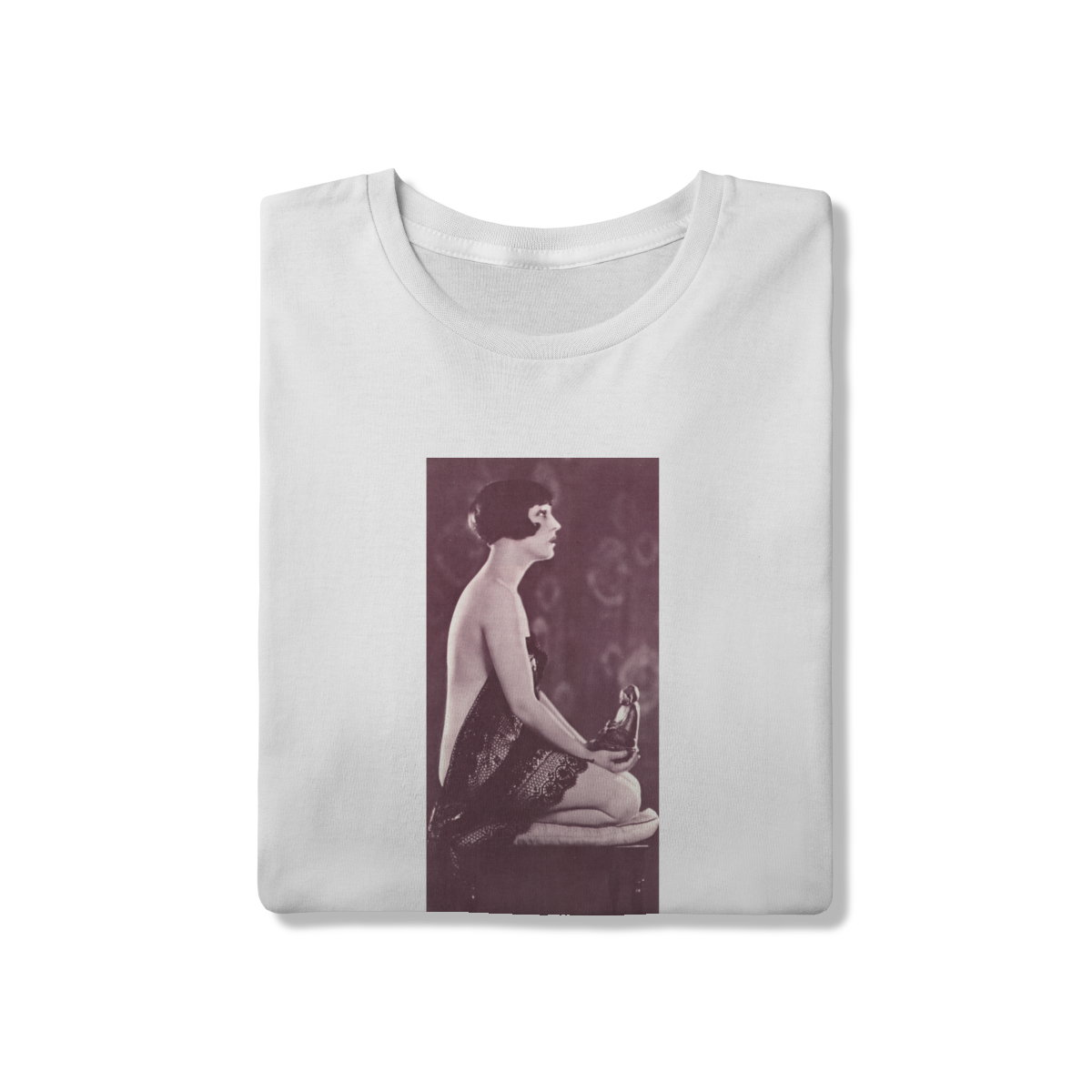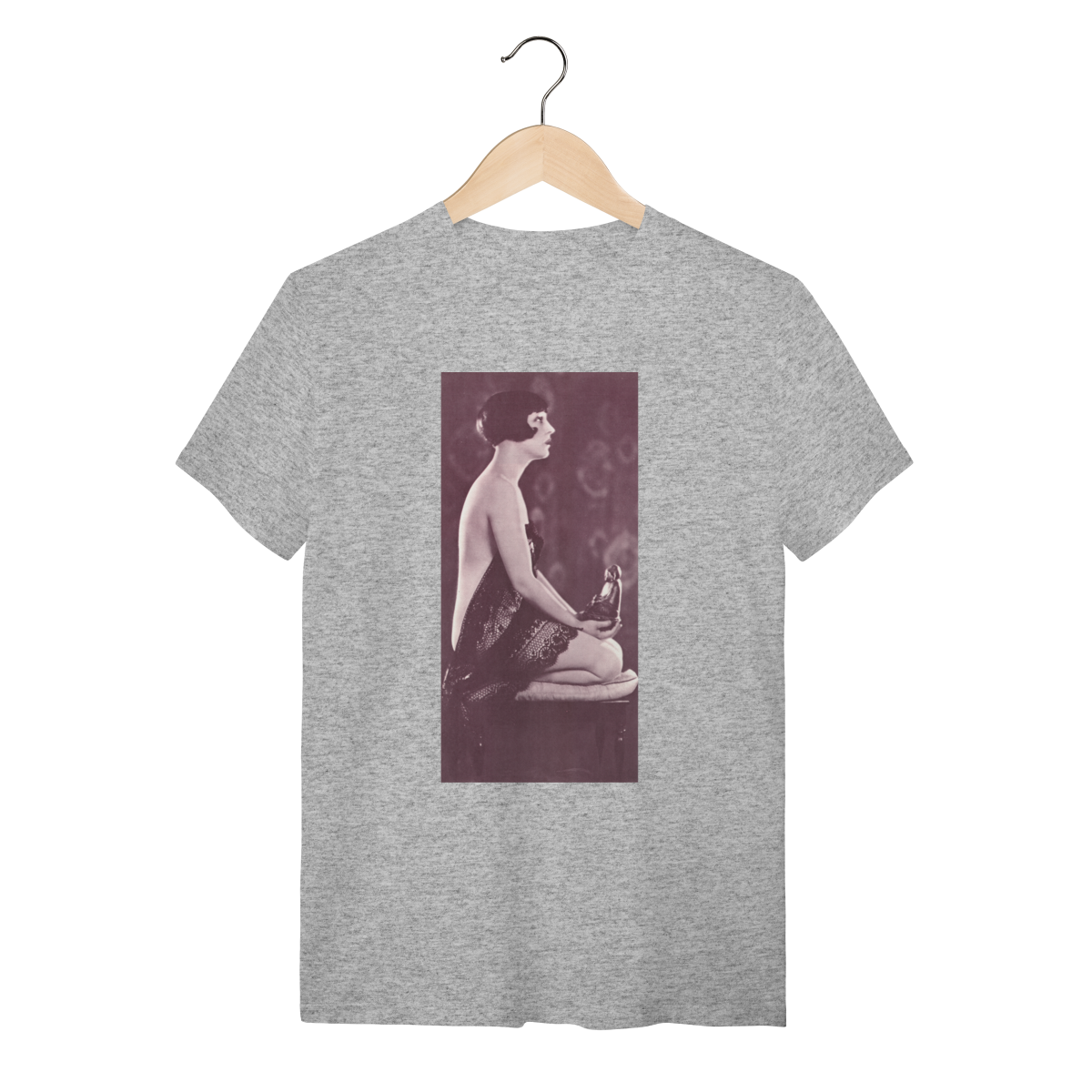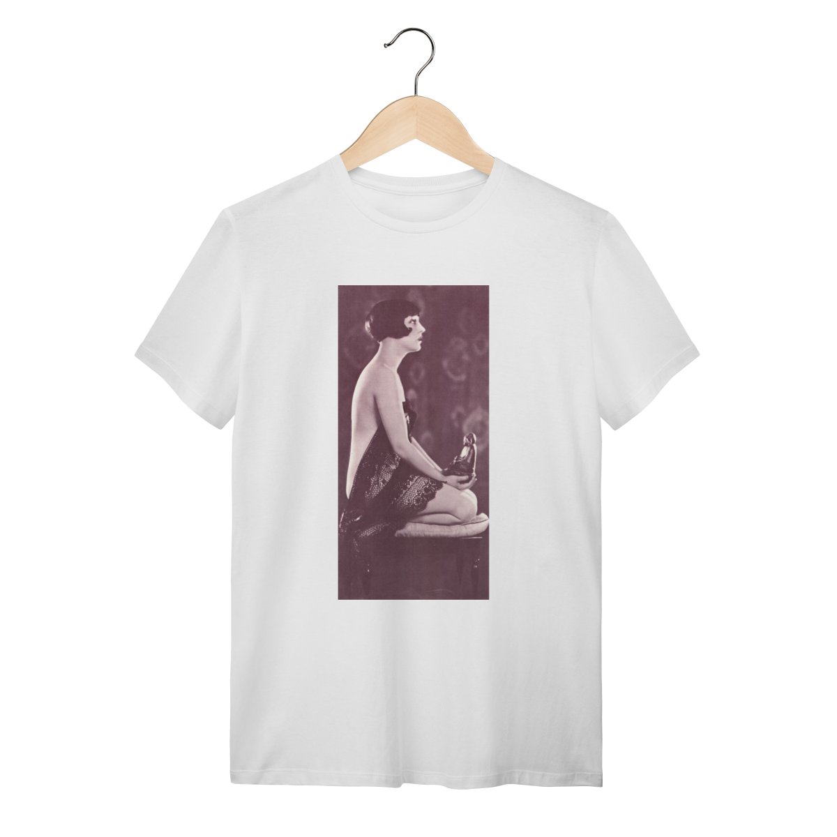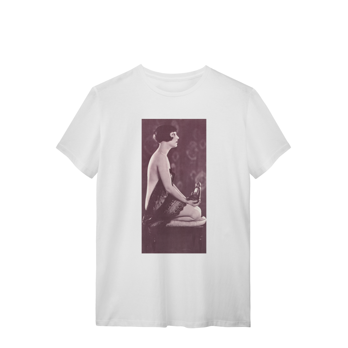 A estampa “Beatriz Costa” traz o charme do cinema português dos anos 20, mas com um toque de paz interior. Arte vintage, poética e expressiva.