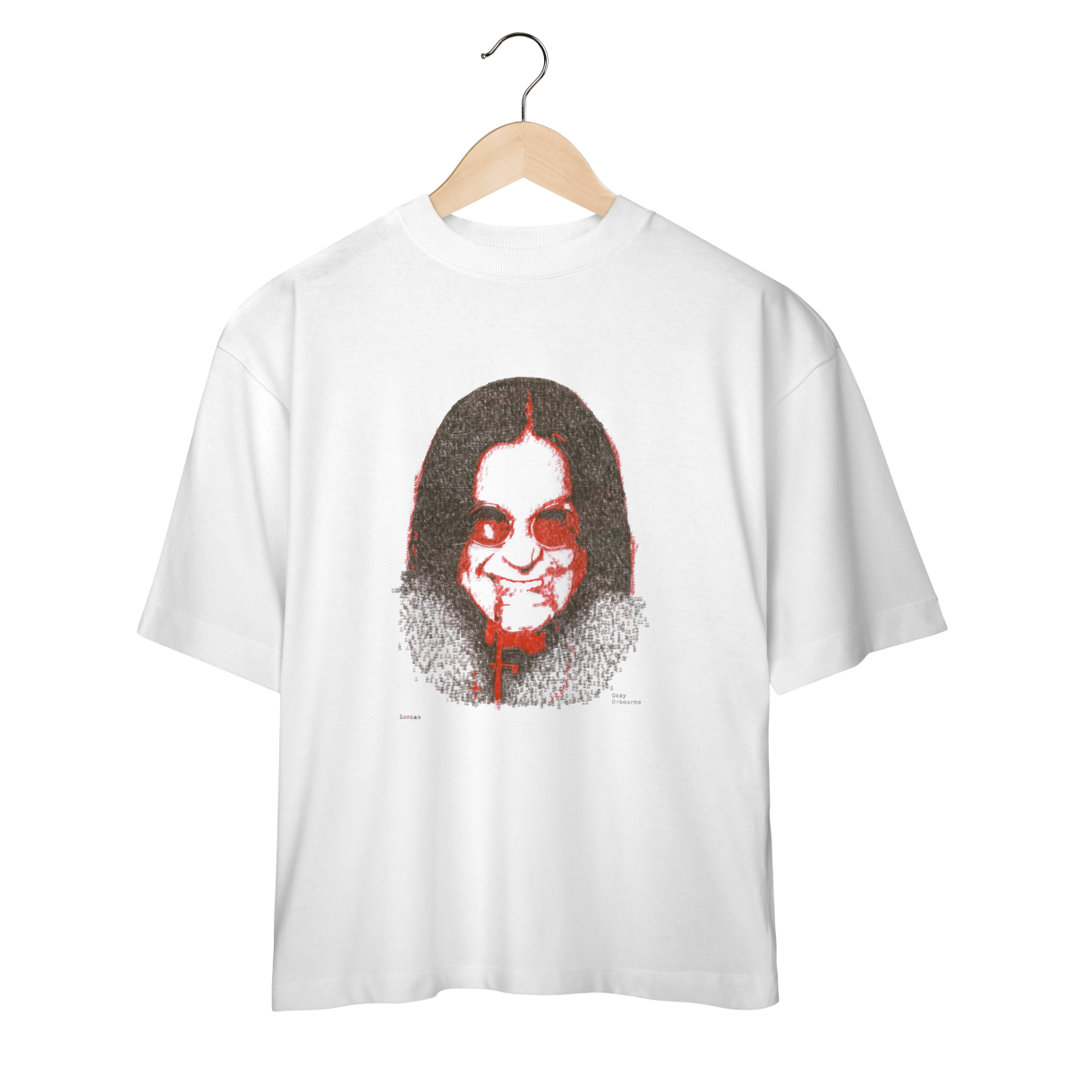 Nesta arte datilografada, o ícone Ozzy Osbourne surge em textura crua e expressiva. O príncipe das trevas em versão artwear — perfeita para quem curte música, atitude e estilo.