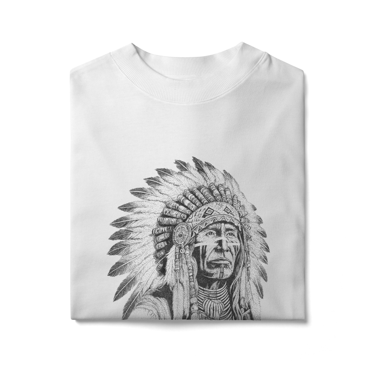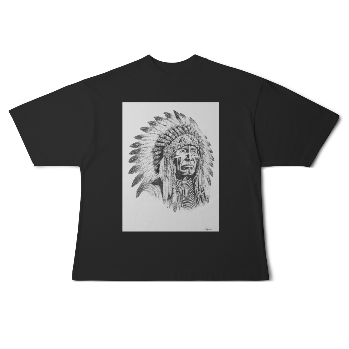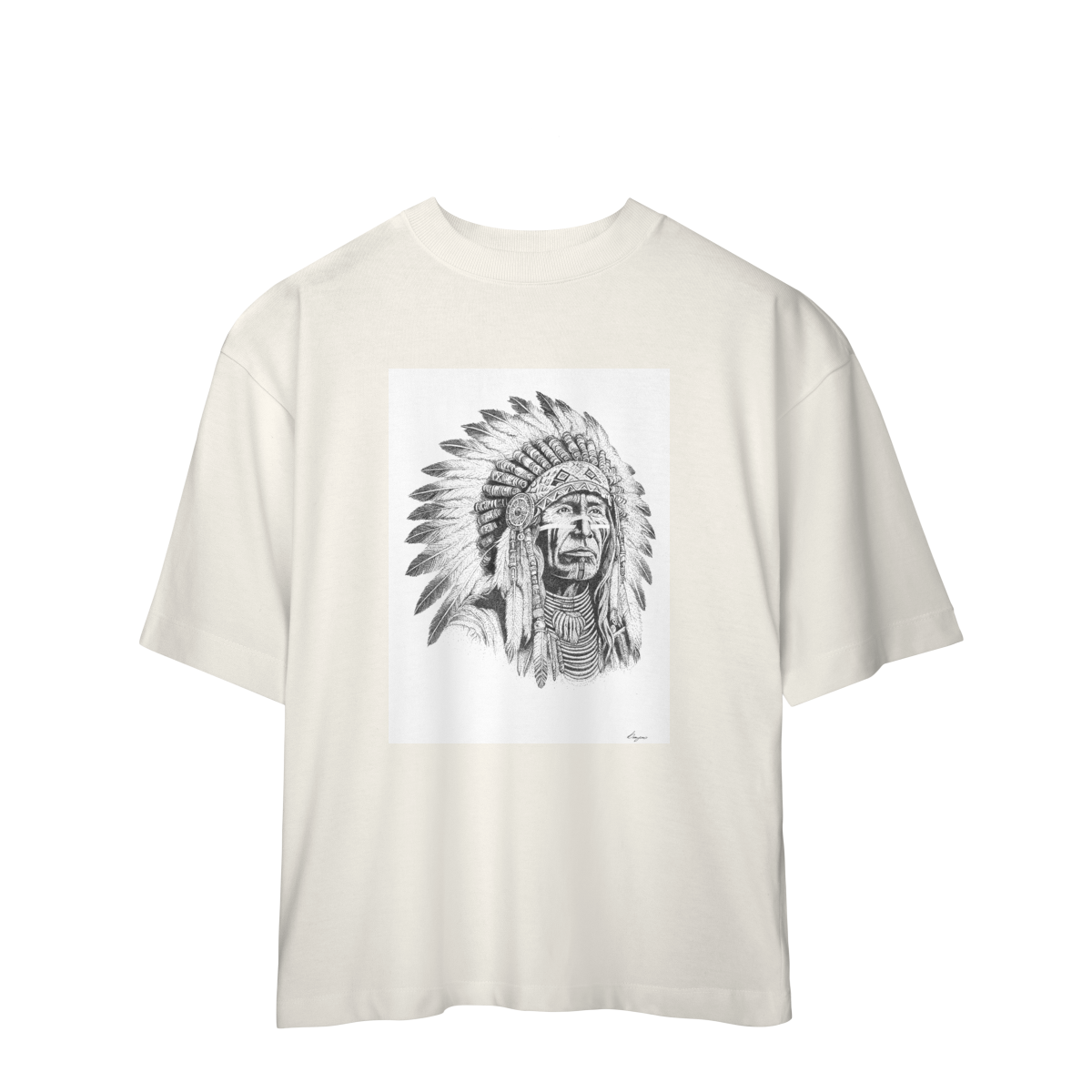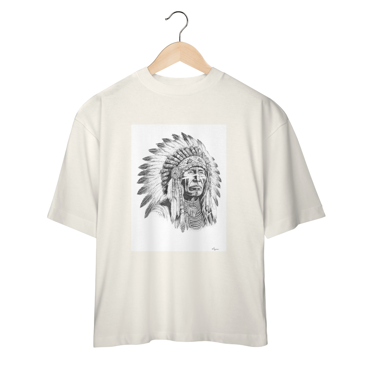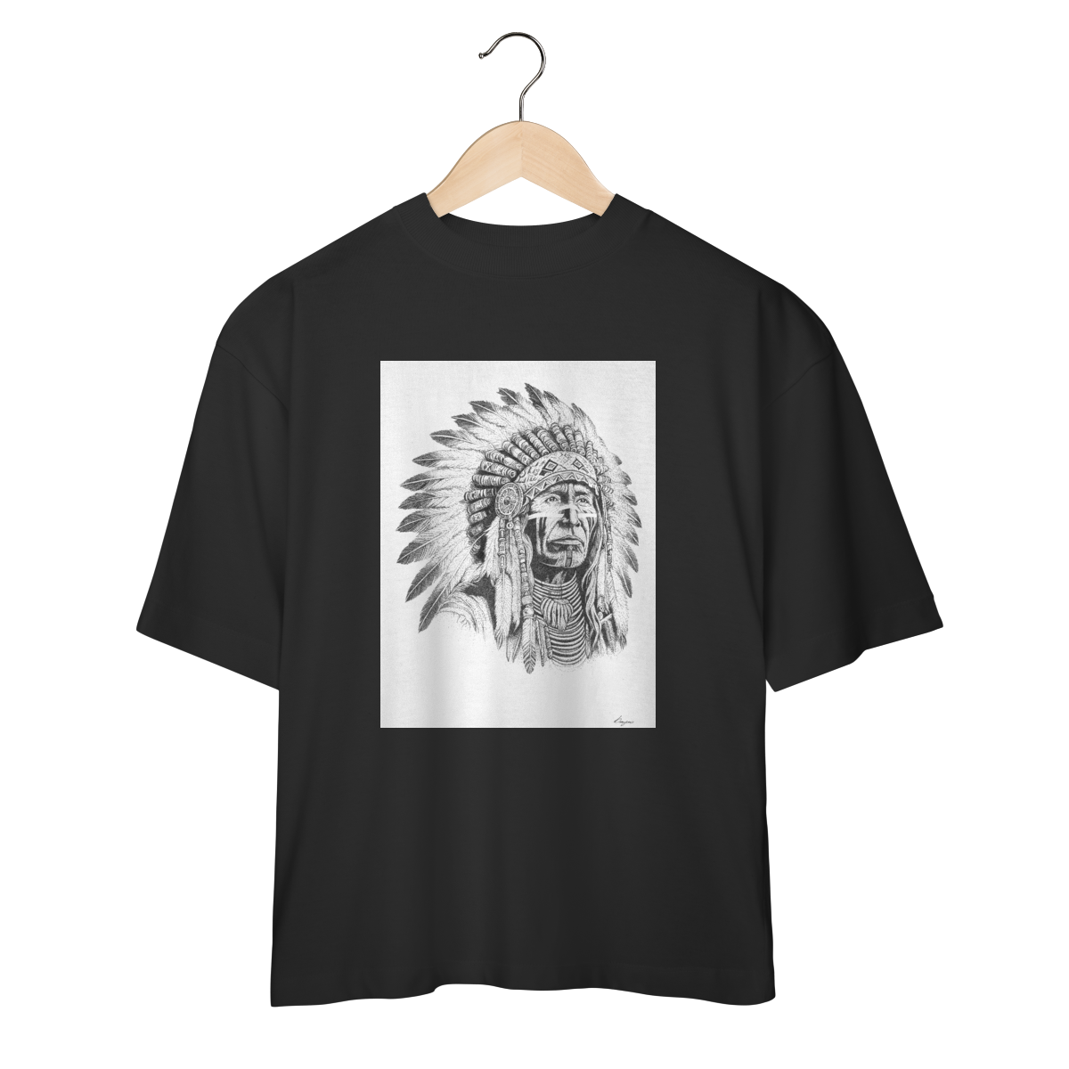 Em “Indígena Wóčhekiye”, o pontilhismo traz textura, espiritualidade e presença. Uma peça forte, simbólica e conectada às raízes — arte que se veste com respeito e força visual.