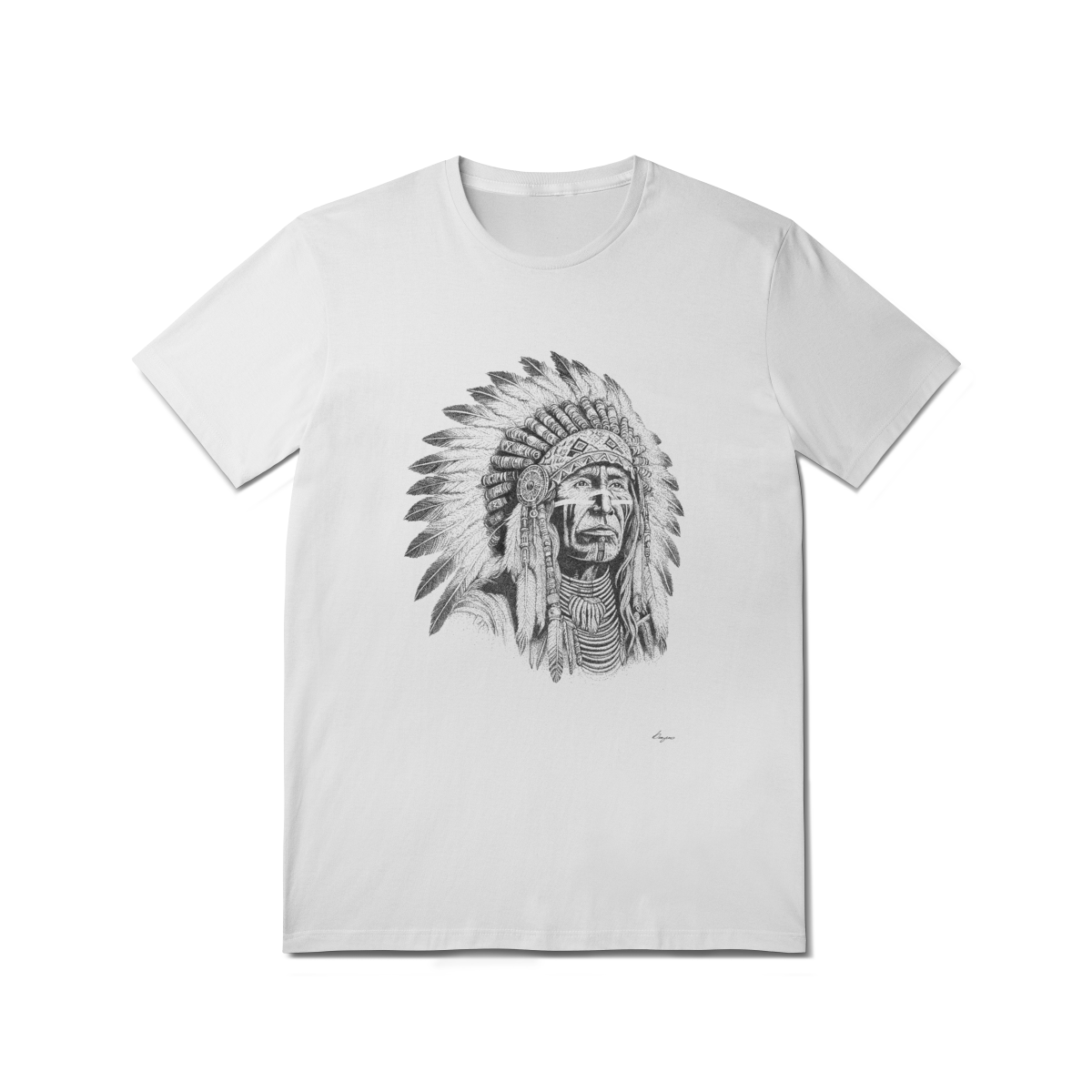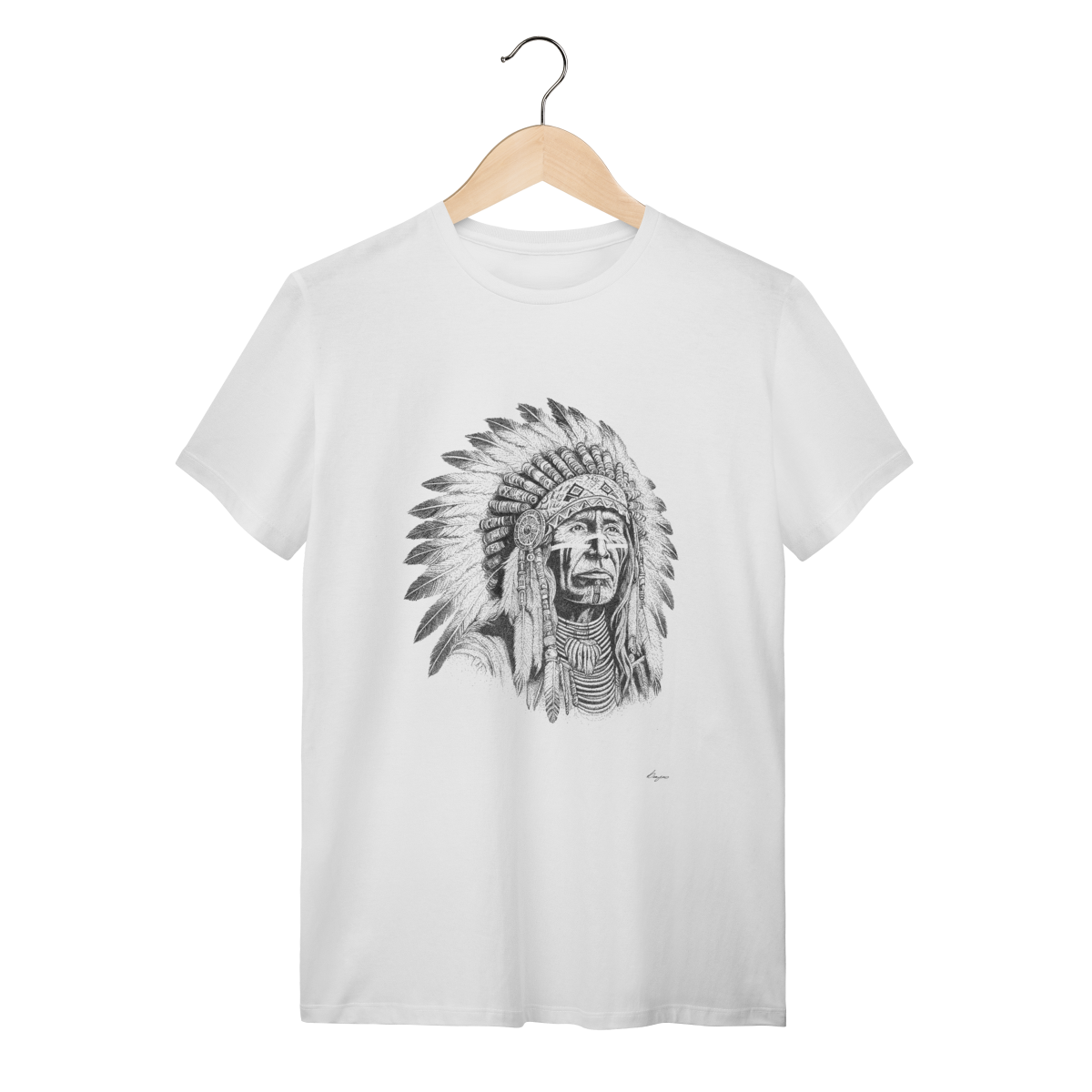 Em “Indígena Wóčhekiye”, o pontilhismo traz textura, espiritualidade e presença. Uma peça forte, simbólica e conectada às raízes — arte que se veste com respeito e força visual.
