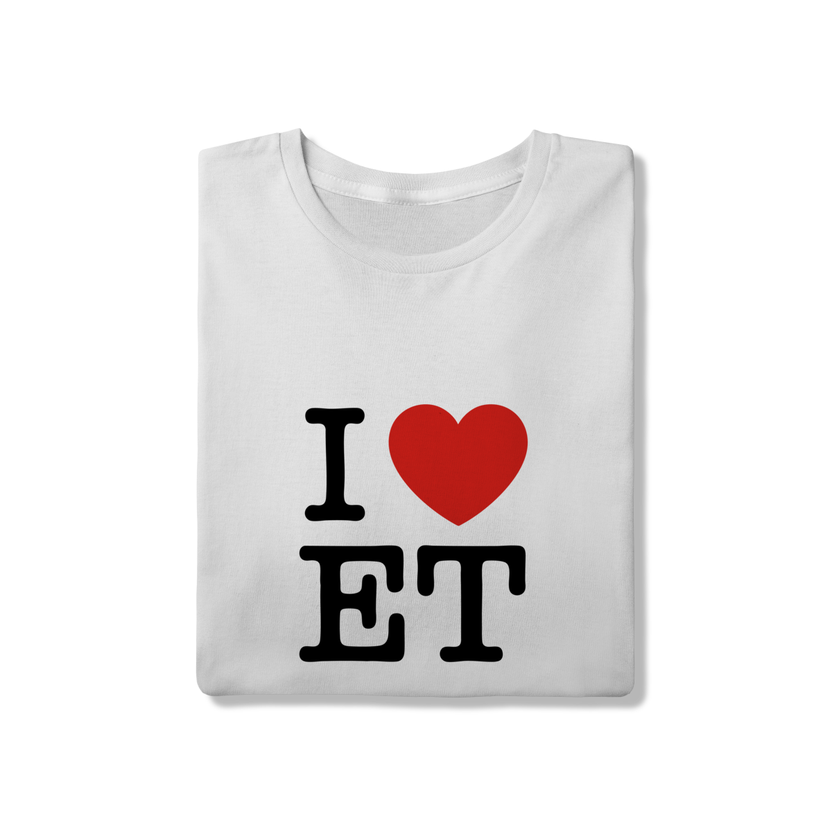 Uma reinterpretação da clássica camiseta turística em formato autoral: I ❤️ ET. Humor, referência pop e artwear direto ao ponto.