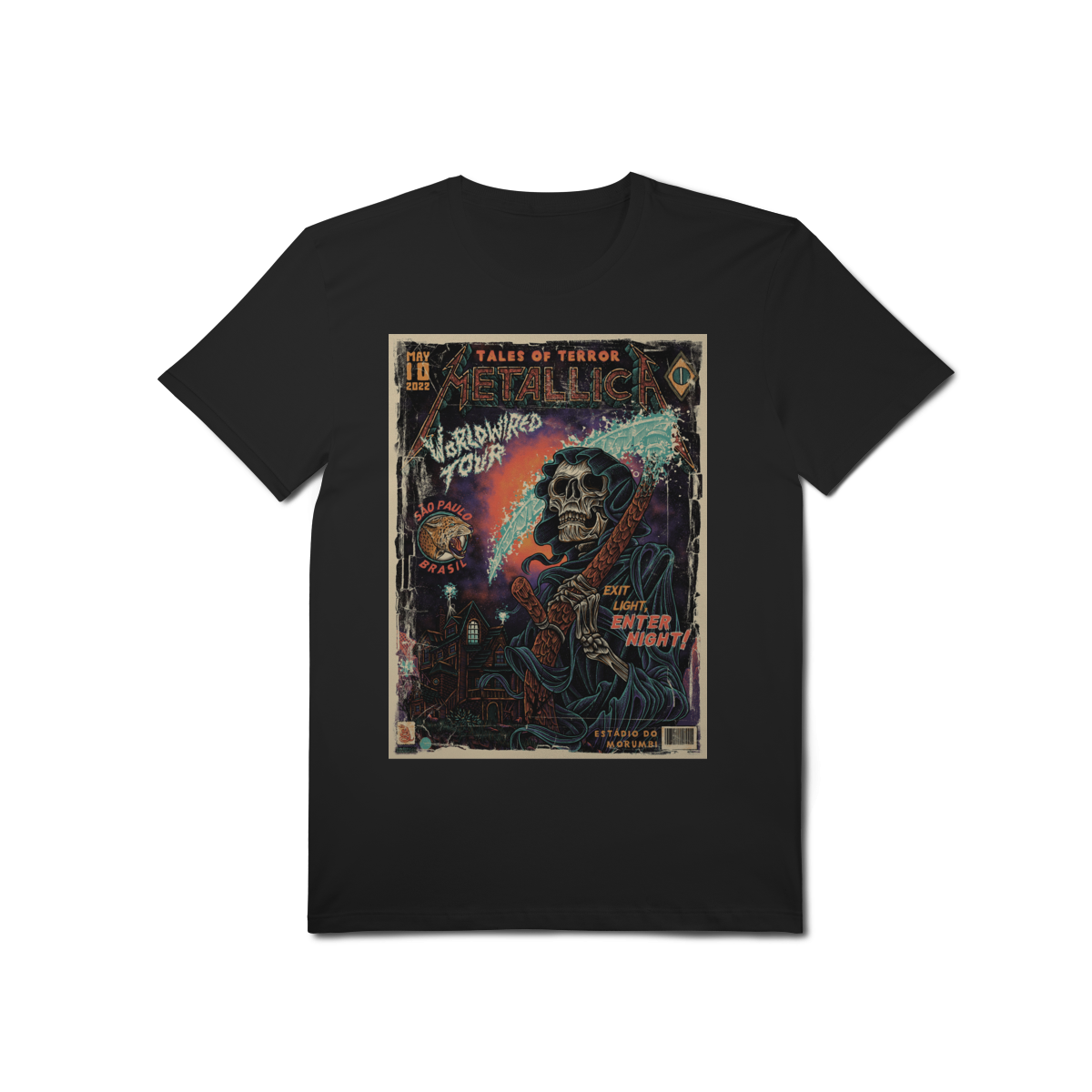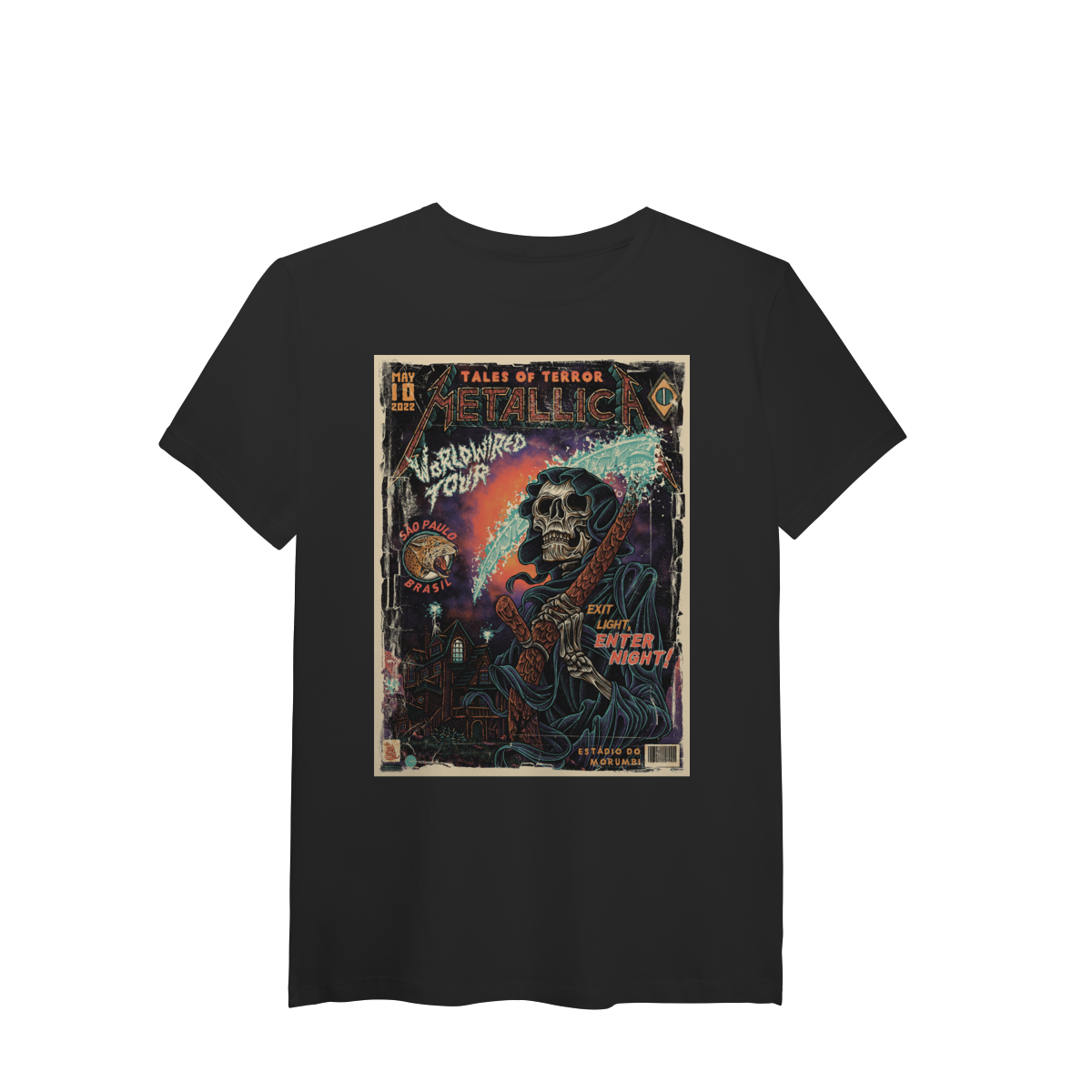 Cores do produto: Como cada tela de computador ou celular tem seu próprio jeito de mostrar cores, então a cor da sua camiseta e da estampa pode ser um pouco diferente do que você viu online.
