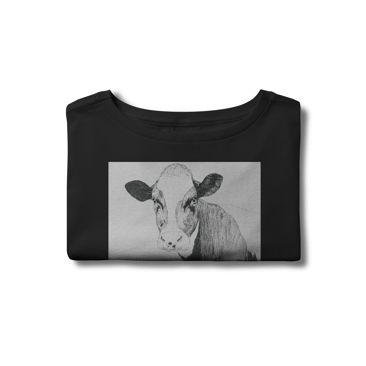 “Vaca Cósmica” une pontilhismo, humor e surrealismo. Uma estampa autoral que vai do casual ao street com personalidade. Muuuuuuuuuuuuuuuuuuuuuuuuu!
